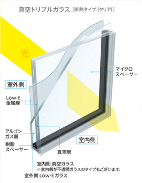 この構造を窓で実現したのが、真空トリプルガラスです。