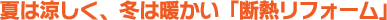 断熱リフォームをすることにより、冬場は暖かく、夏場は冷房による冷気が外に逃げてしまうことをシャットアウトできます。